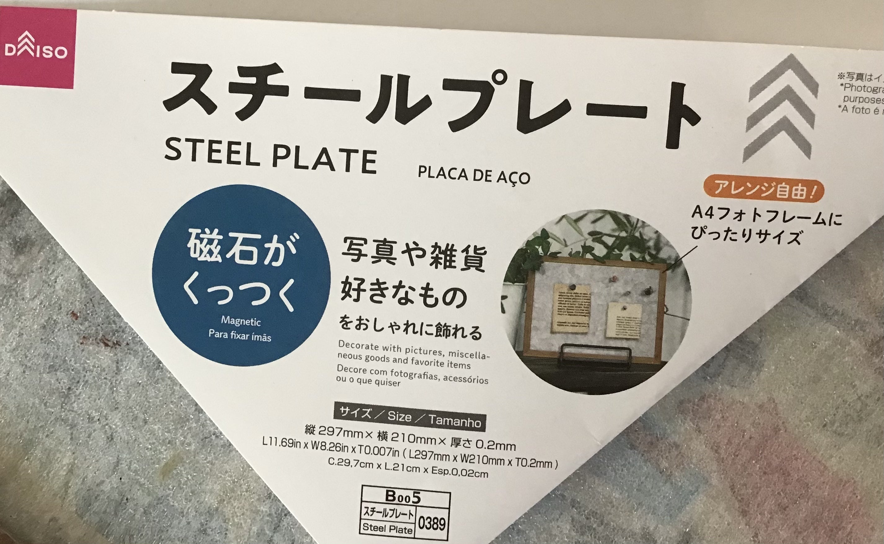 100均ダイソー 金属プレートの売り場はどこ?磁石がつく金属板はカットできる。