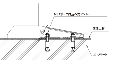 コンクリート床の任意の場所にアンカーボルトで固定設置 ツールエクスプレス 本店。