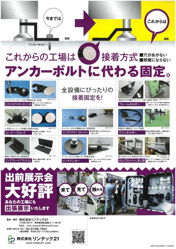 床を傷めず什器固定で地震対策ニュープロダクツリスク対策.com新建新聞社。