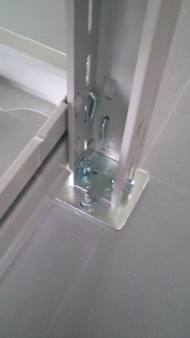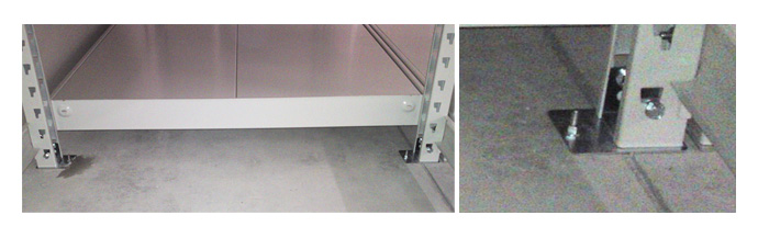 スチール棚の床固定による転倒防止対策 -スチール棚.com。