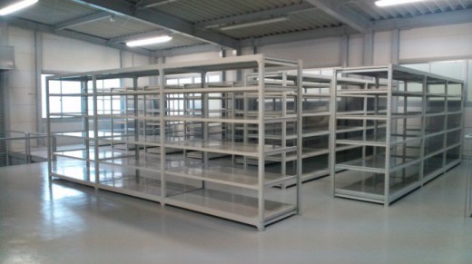 軽中量スチールラック36台をアンカー床固定で設置した事例。