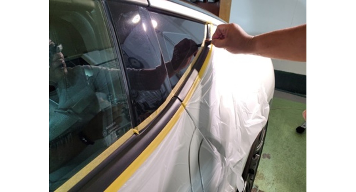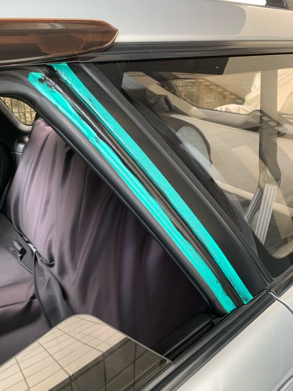 窓枠のゴムパッキン白色化東京の車コーティング専門店創業36年のビューティー106施工実績ブログ。
