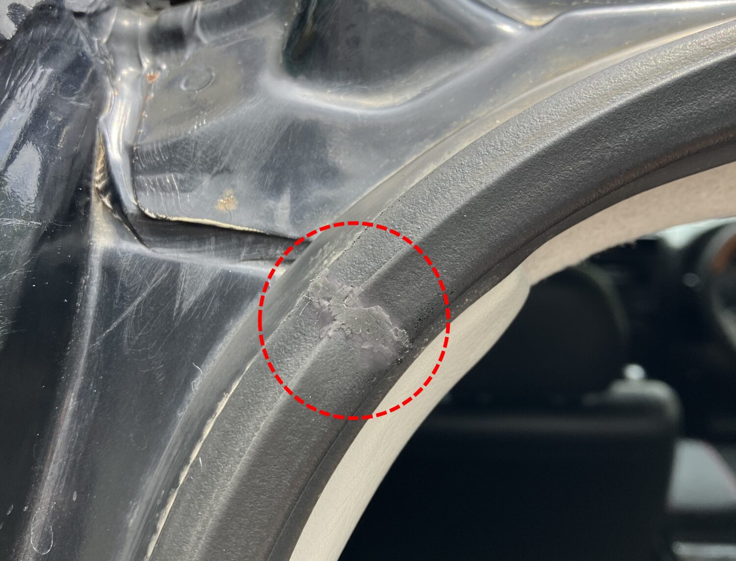 ドアの窓枠からゴム片が ニッサン ノート ベルトモールが千切れて熱で溶けた様な現象 原因不明で稀な現象だと思われます 貝塚市岸和田市泉佐野市和泉市グーネットピット。