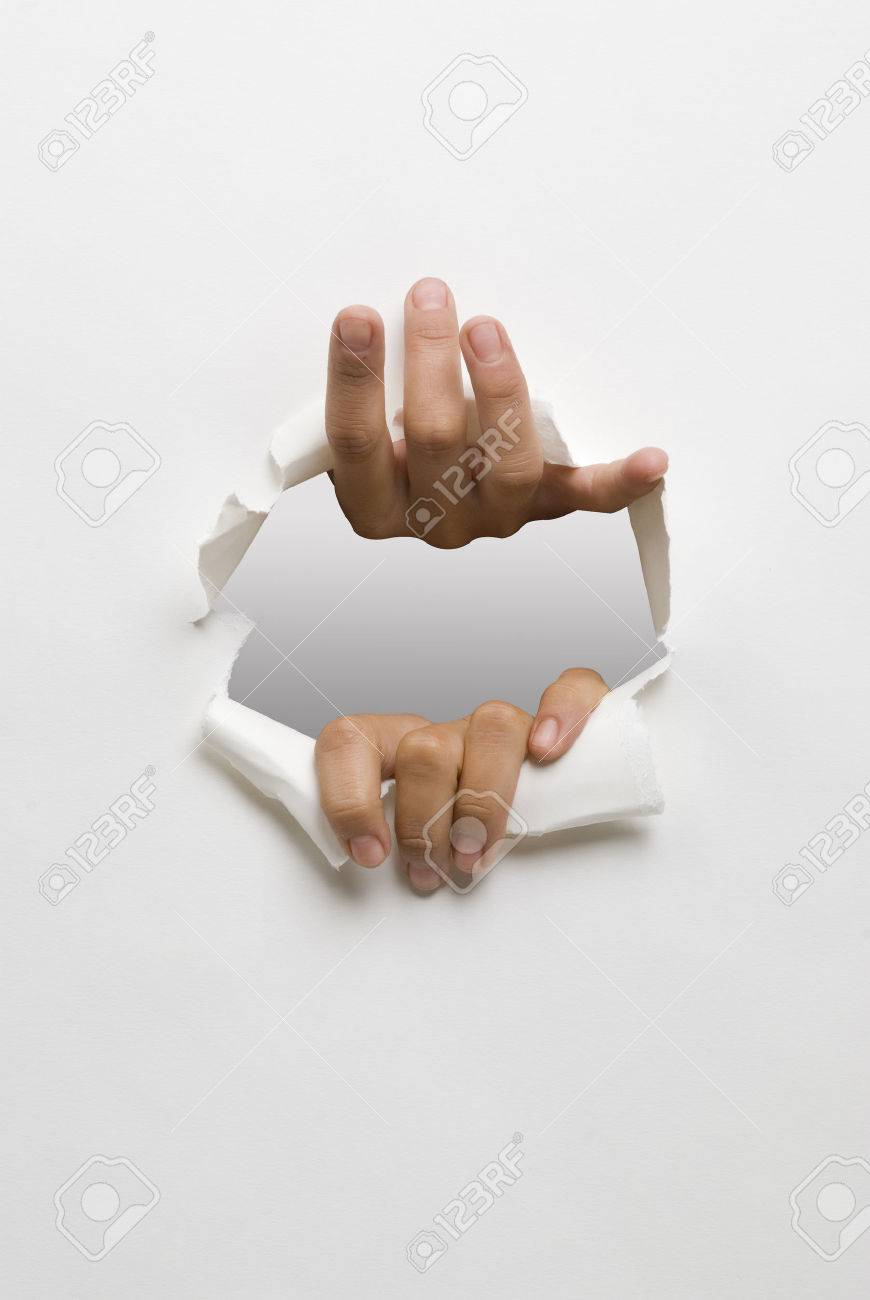 白い段ボールに穴を開ける手の写真素材・画像素材 Image 1606130。