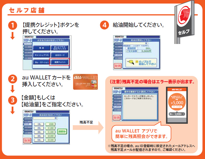 出光 IDEMITSU うかいや でau WALLET決済給油する手順 ガソリン・灯油-au WALLET徹底解説。