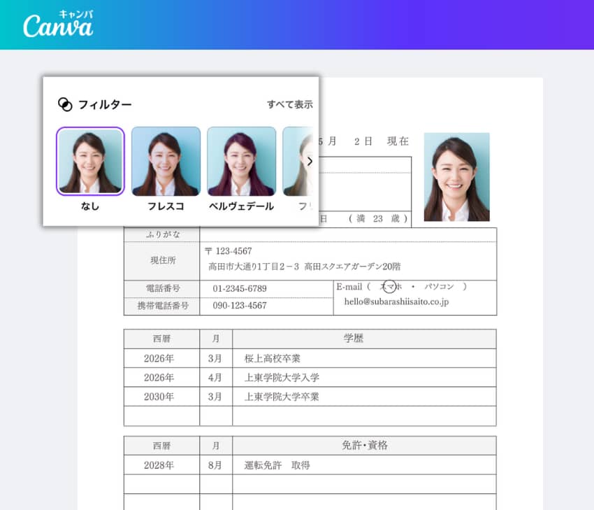 履歴書作成 - テンプレートで簡単に作れるAI搭載の無料スマホアプリCanva キャンバ。