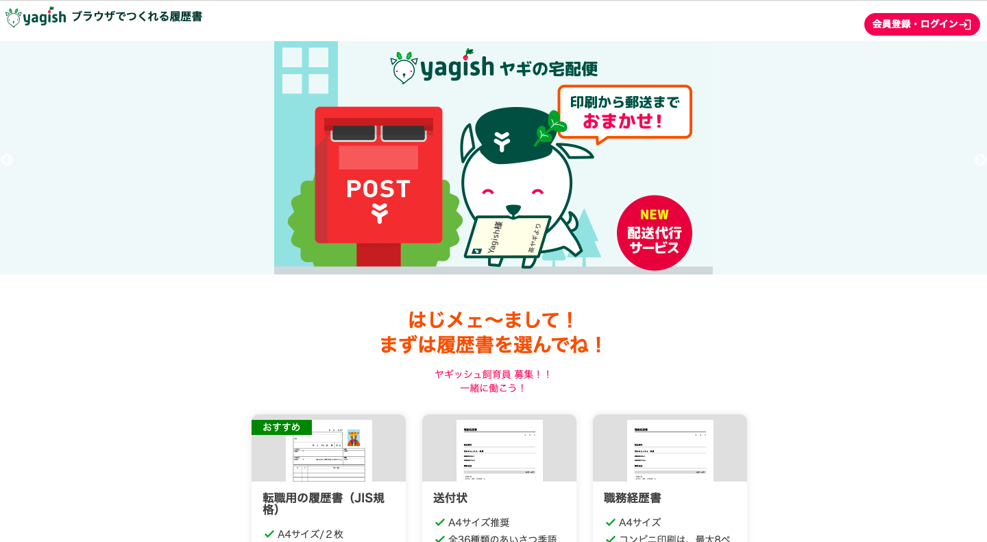 ブラウザでつくれる履歴書・職務経歴書「yagish ヤギッシュ 」。