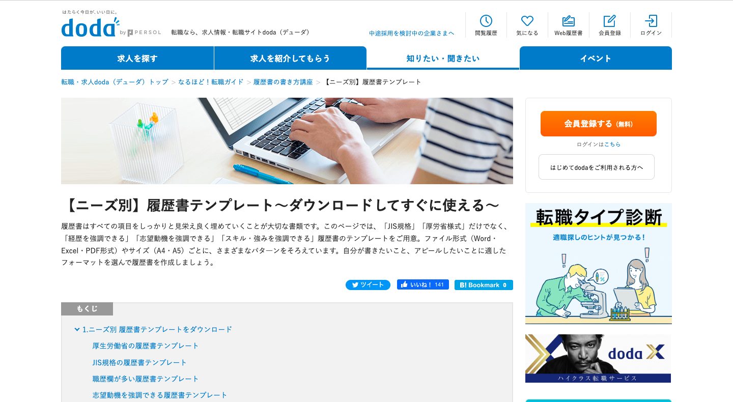 ニーズ別 履歴書テンプレート無料ダウンロード Word・Excel・PDF転職ならdoda デューダ。