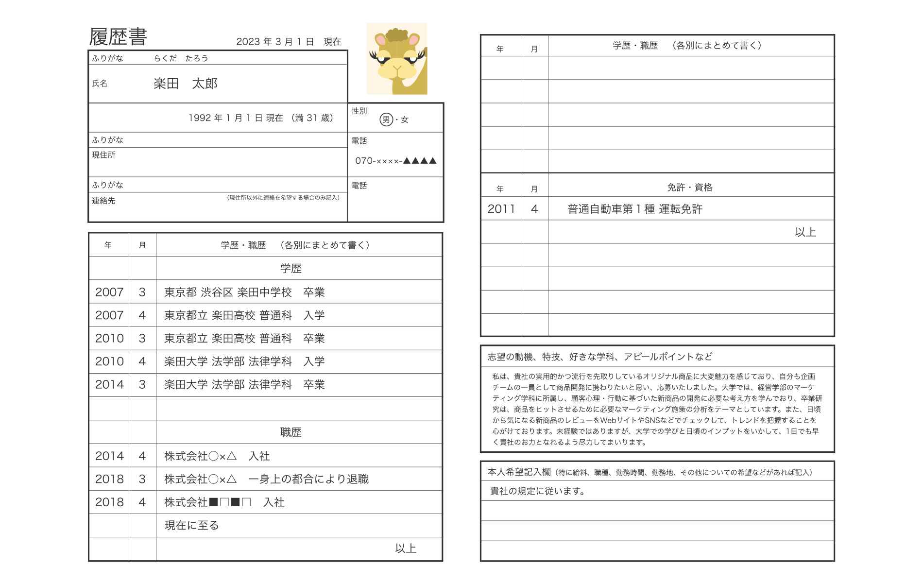 履歴書・職務経歴書テンプレート・フォーマット - 無料ダウンロード・印刷までできるCanva。