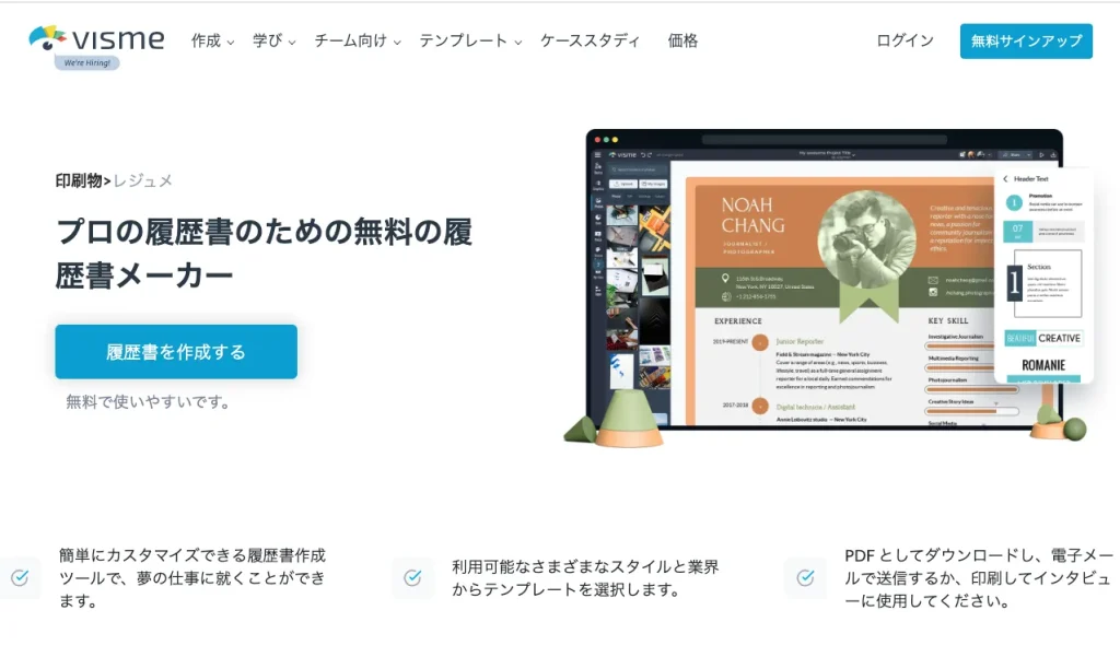 無料オンライン履歴書・職務経歴書メーカーCanva キャンバ。