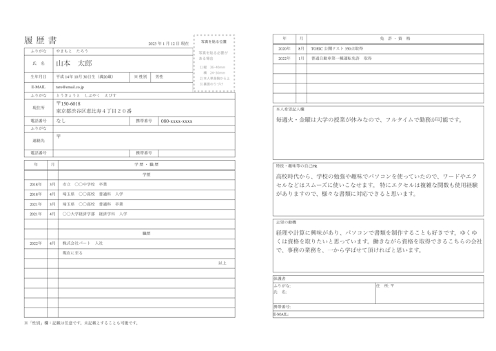 履歴書の書き方 簡単作成 見本 サンプル ・記入例あり。