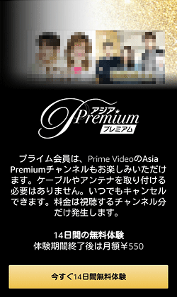 アジアプレミアム公式初回14日間無料のアジア作品中心の専門チャンネル。