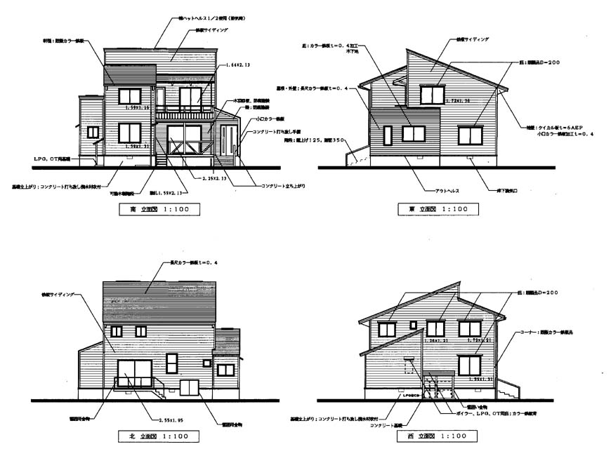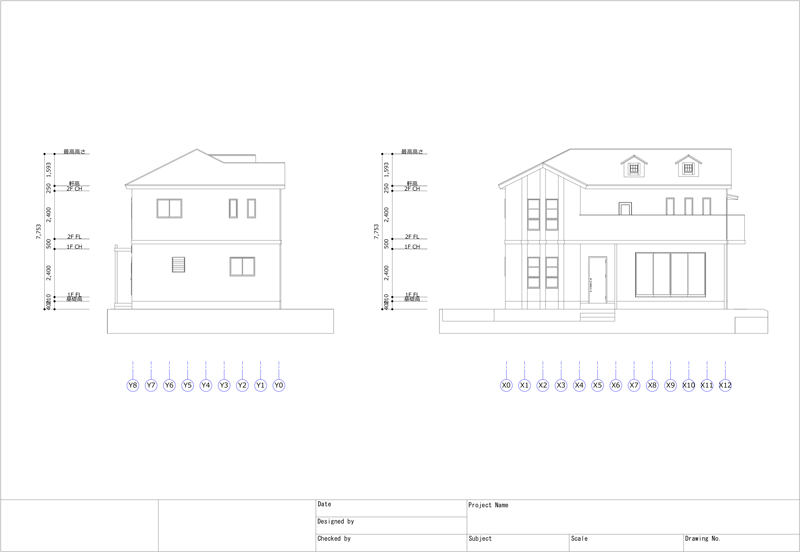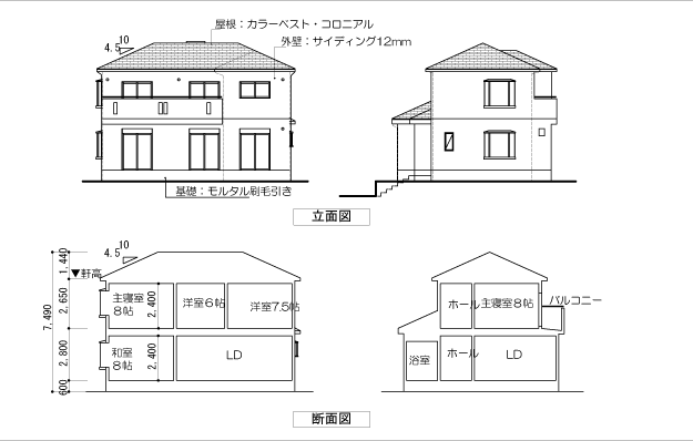 木造2階建専用住宅の課題 立面図・断面図- 俺のメモランダム。