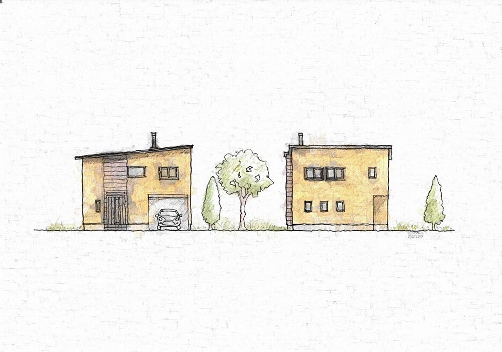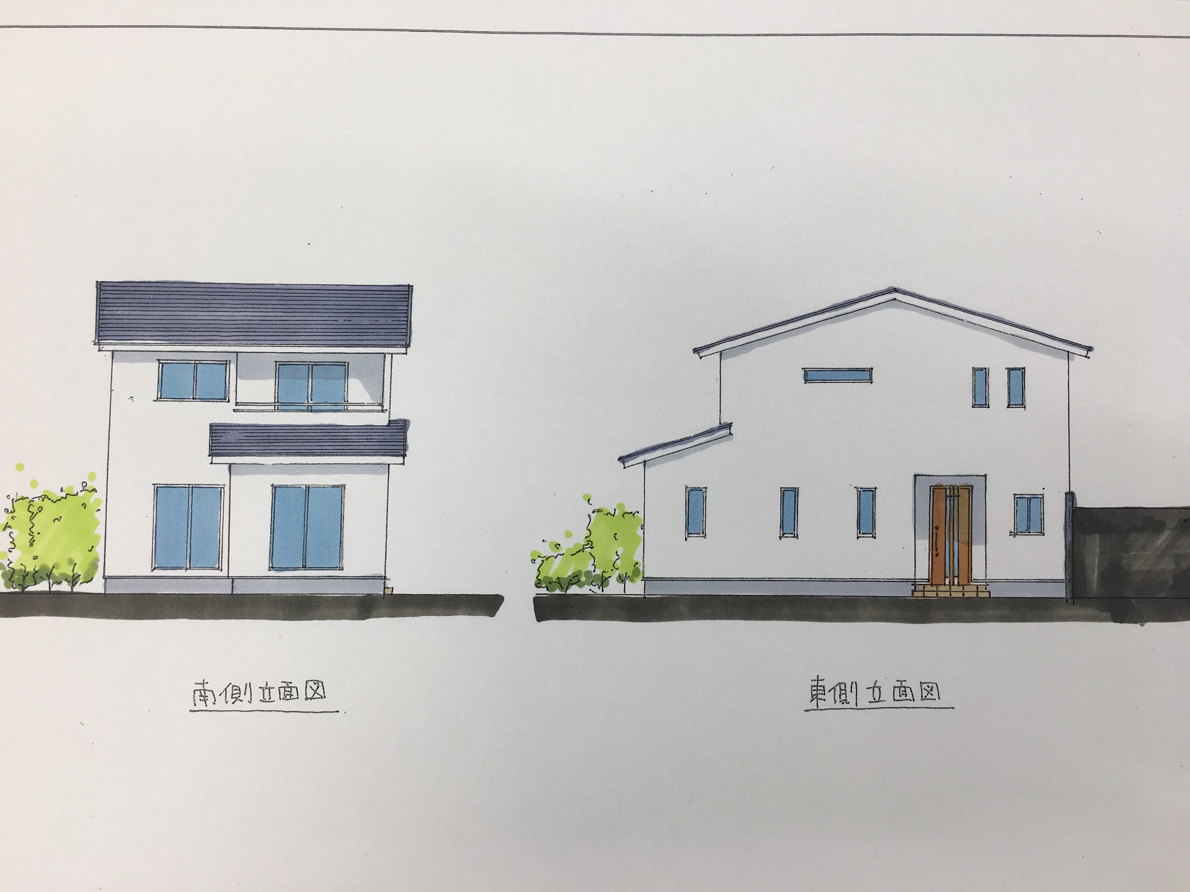 スケッチ風立面図手描きパースの描き方のコツと水彩画。