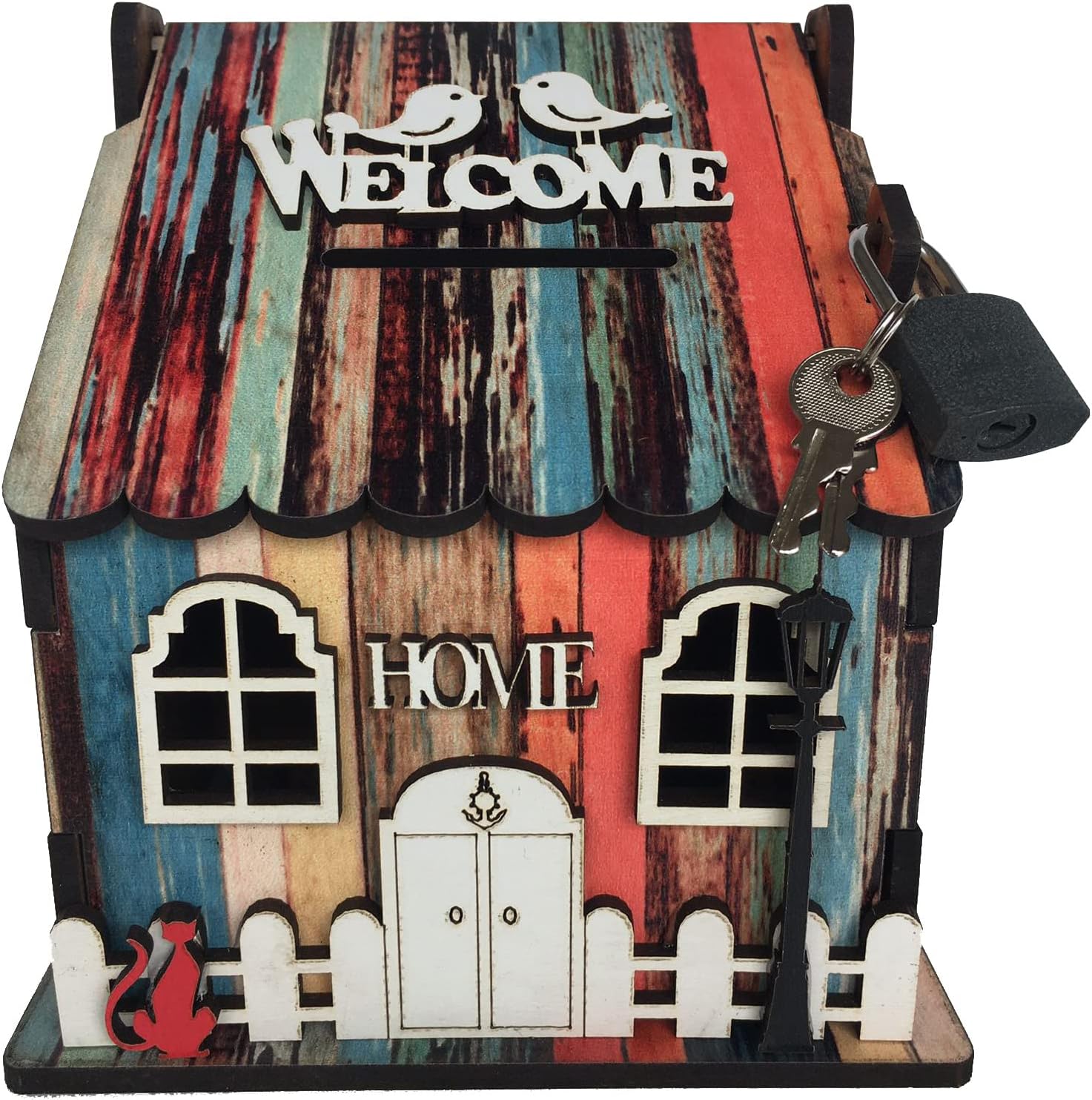 木製貯金箱 正方形 ミニパッドロック付き手作り貯金箱ギフトアイデア節約コインボックス真鍮がはめ込まれたコーナ 楽天市場メール便可工作キット 不思議な貯金箱 組立式 紙製 コインが消える!夏工作 夏休み工作 ちょきんばこ 組立 紙 手作り貯金。