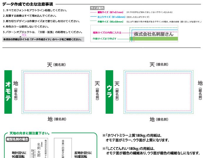 データ作成の注意点データ入稿名刺印刷!格安、短納期、イラストレーターデータ。