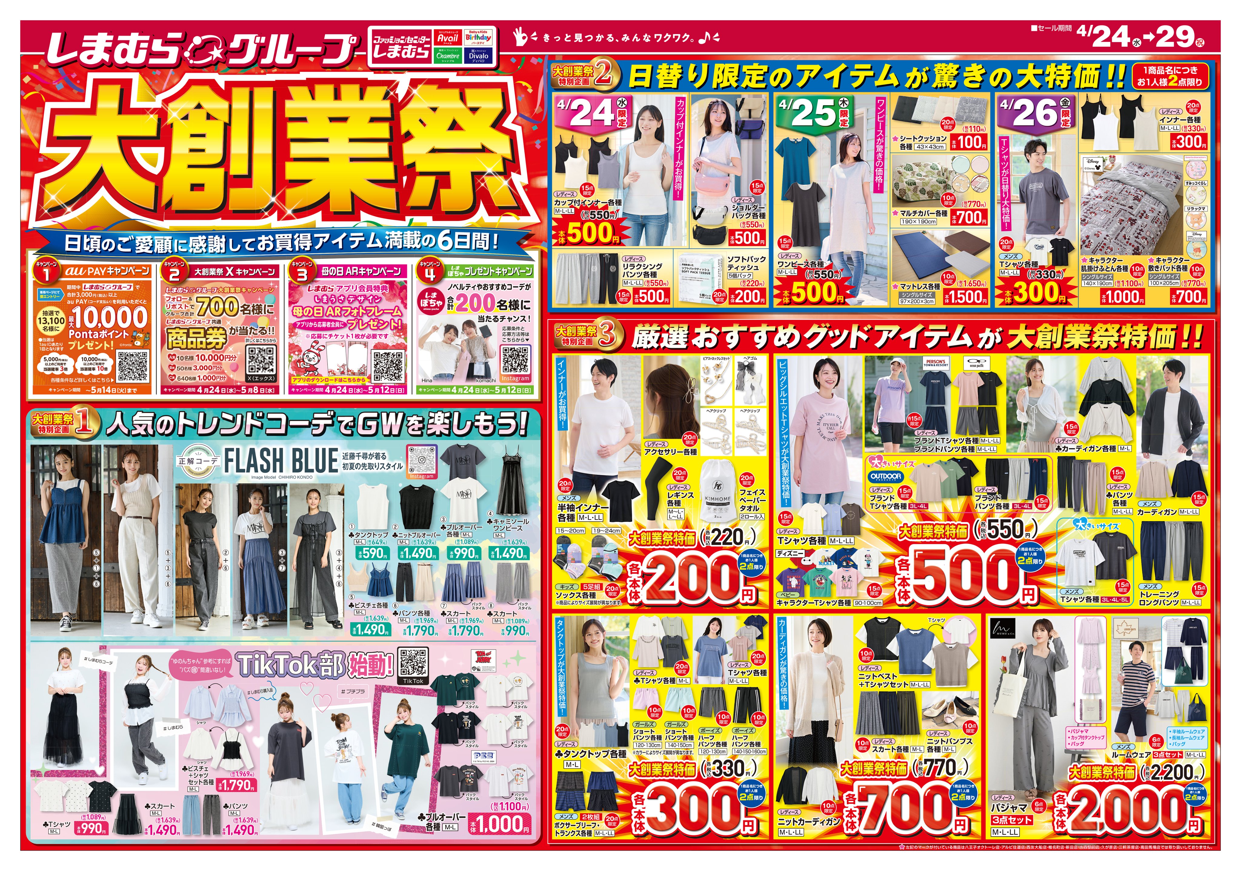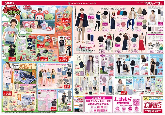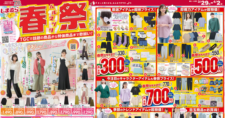 しまむら 最新チラシ情報 3 29-4 2 春祭!大特価330円~!TGCで人気のアイテムも登場海賊つうしん。