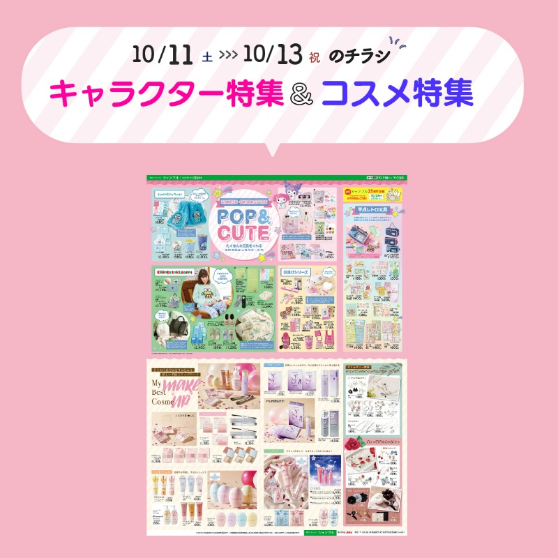 しまむら - 📢チラシ更新 \⭐しまむらオンラインストア3周年⭐オンラインで人気の商品が店舗に登場😄 おぱんちゅうさぎ もちまる日記キャラアイテムが可愛い🐰🐈 トレンド・大きいサイズアイテムにも注目👀 セール期間:10 7 土 ~10 10 火▽詳しくはhttps:www。