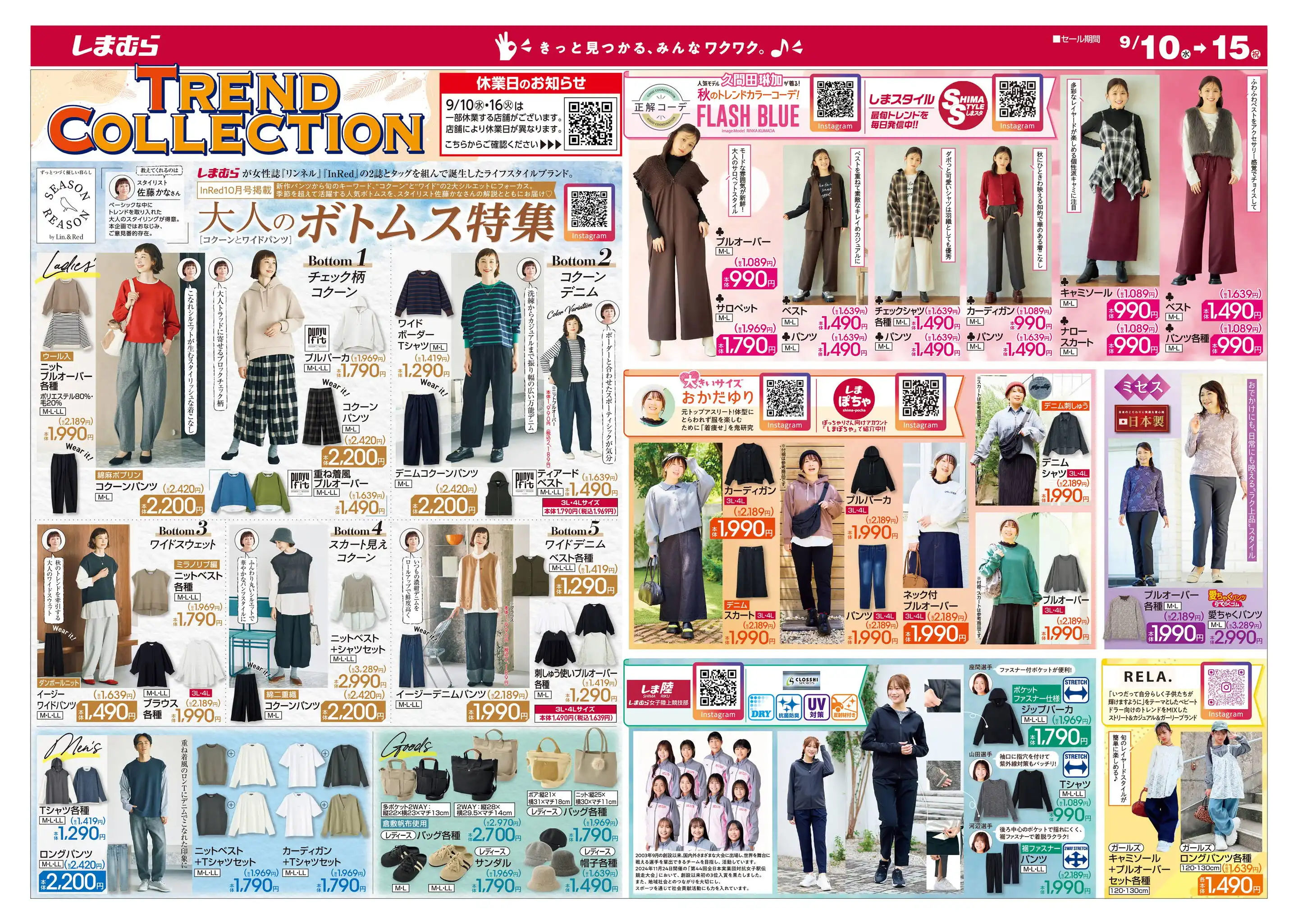 しまむらチラシ速報 2024年9月4日~ファッショングッズフェア!韓国トレンド、骨格。