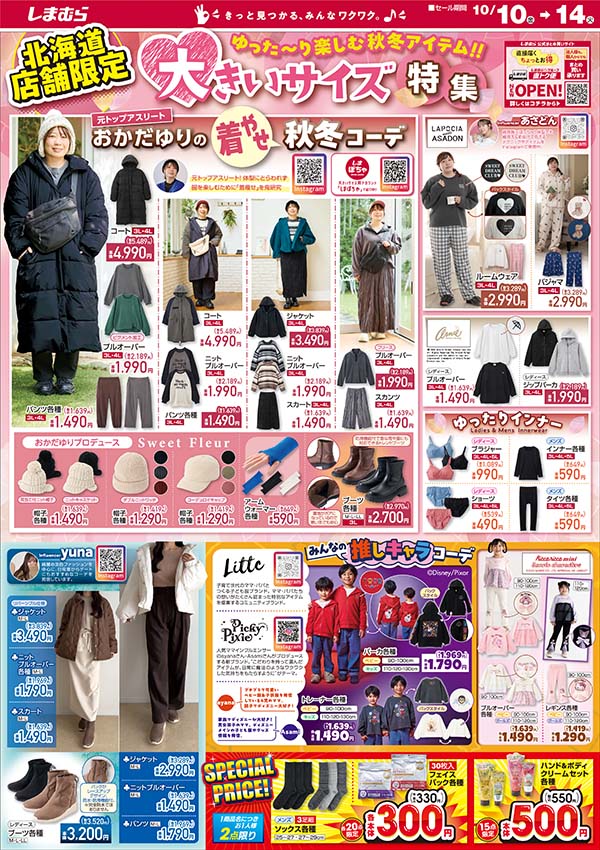 しまむらチラシ速報 2024年10月9日~特別祭 第2弾でセール価格!シーズンリーズン、おかだゆり秋コーデも新発売。