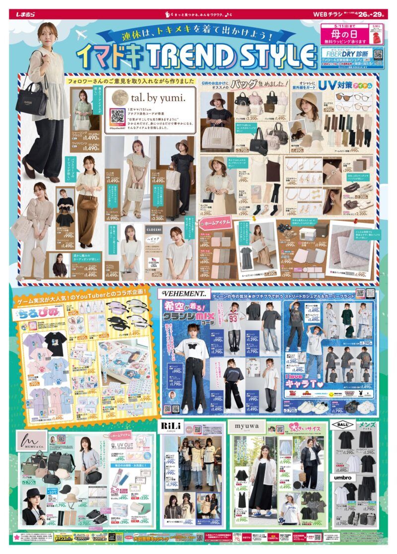 しまむら チラシ 最新まとめ!目玉商品、コラボ、セール情報。