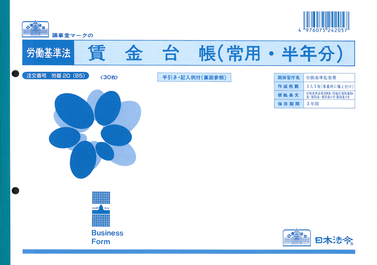 日本法令 賃金台帳 一年分 B5 30枚 労基20改: 事務用品・文房具-オフィス・現場用品の通販キラット KILAT。