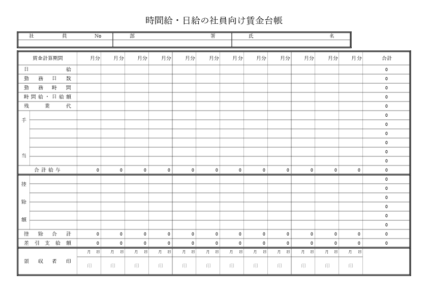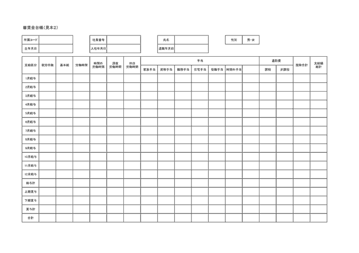 文書 テンプレートの無料ダウンロード: 賃金台帳。