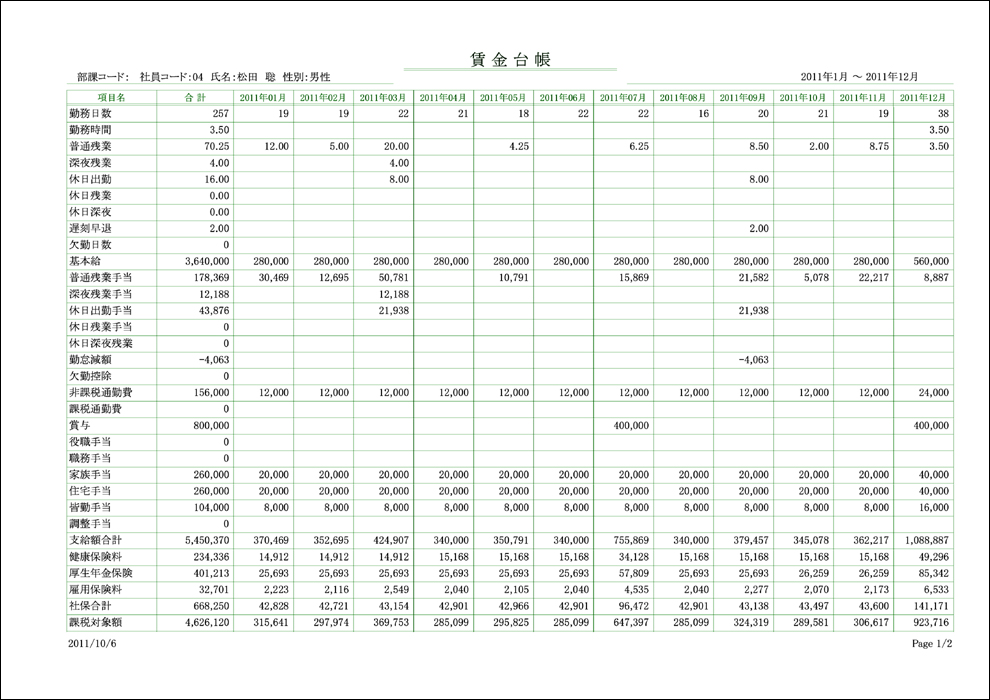 かるがるできる給料4 印刷見本 給与ソフト 給料ソフト 給与業務,給与計算,給料明細,賞与明細,賃金台帳。