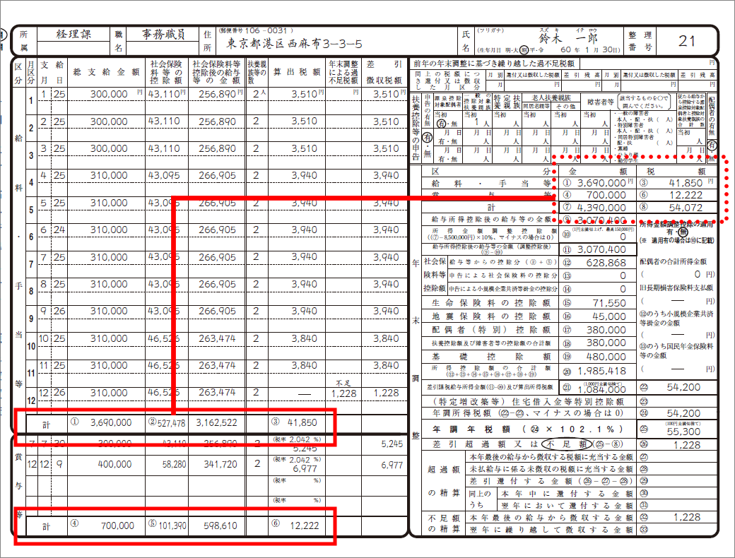 社労法務 賃金管理 賃金台帳を印刷したが、控除額合計・差引支給額が0になっている。