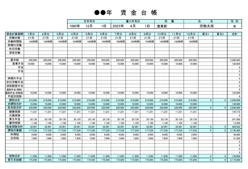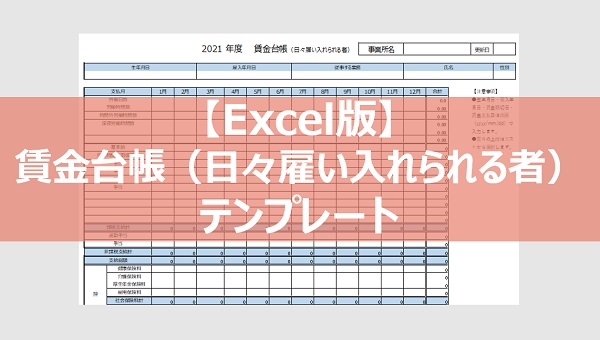 自動集計付きの賃金台帳Excelテンプレート2種 無料ダウンロード- 登録不要のフリーテンプレート。