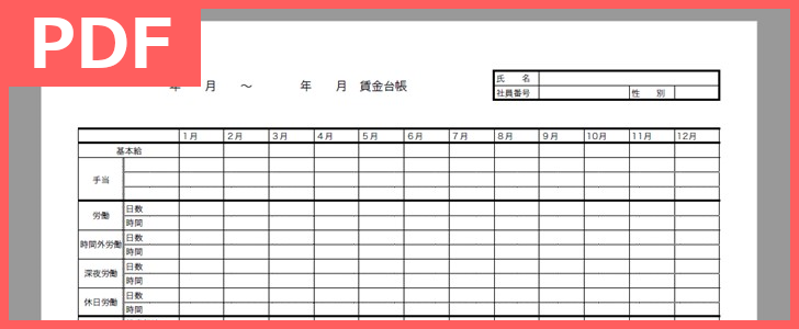 すぐに使える賃金台帳テンプレート Excel・PDF 無料・登録不要ビズ研。