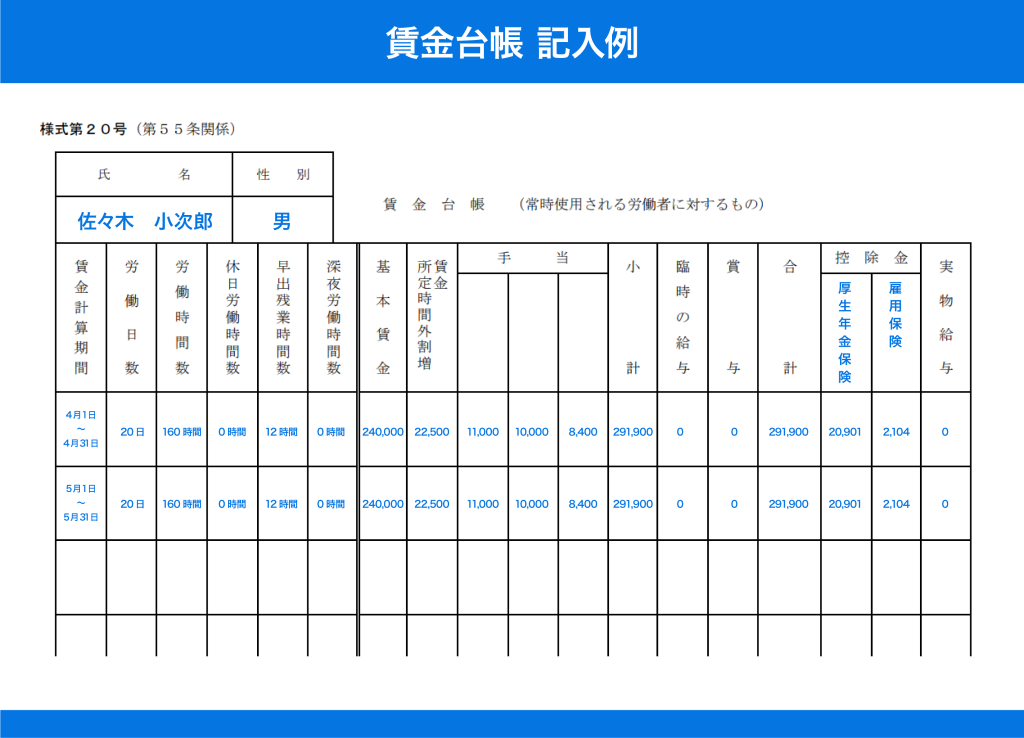 賃金台帳の書き方・注意点を解説 例文テンプレートあり 書式の例文書き方コラムbizocean ビズオーシャン ジャーナル。