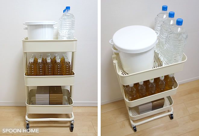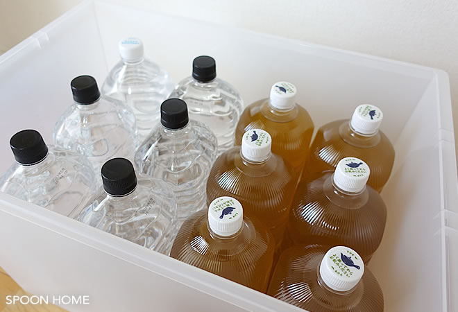 2Lペットボトルの収納・積み重ねアイデア 500mlが24本収納できるコンテナもイエコレクション iecolleインテリア、雑貨情報が満載のWEBメディア。