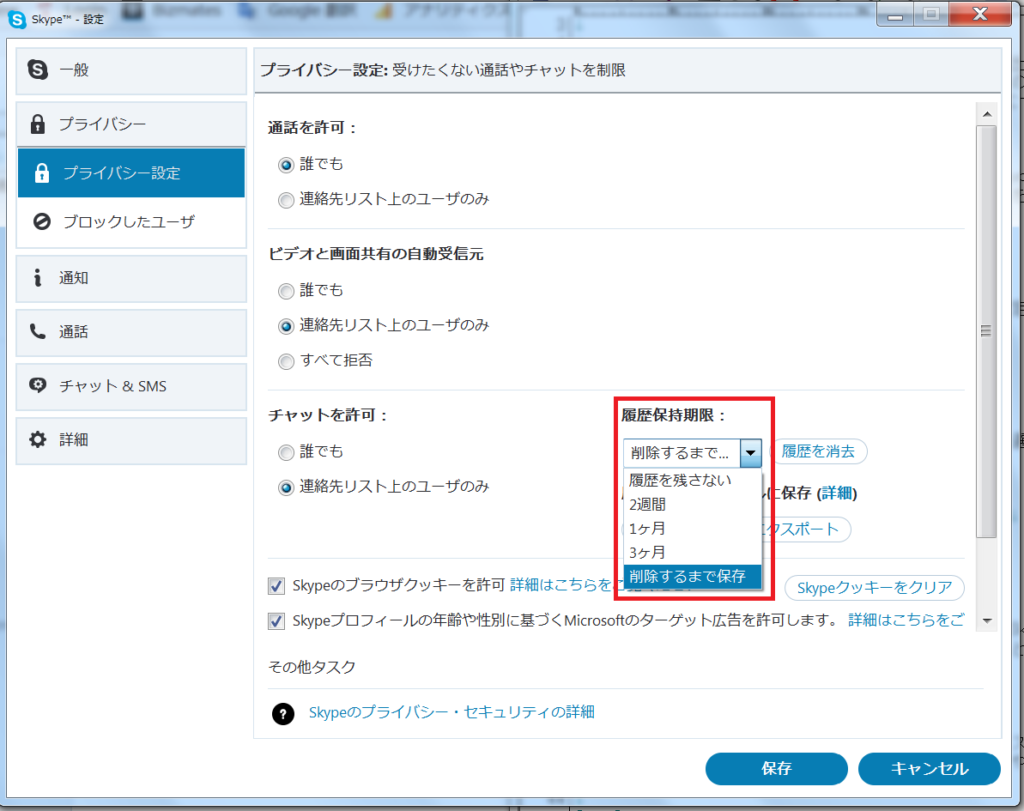 Skypeチャットのログ保存方法と自動削除設定STUDIO SERO。