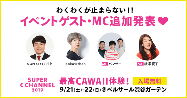 NON STYLE 井上、パンサー、横澤夏子、paku☆chan 追加イベントゲスト・MCを発表!ブース・ステージマップも公開!CChannel株式会社のプレスリリース。
