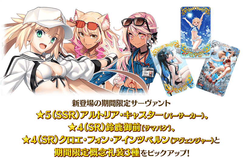 期間限定 「サーヴァント・サマー・フェスティバル2023! アルトリア・キャスター バーサーカー ピックアップ召喚」!Fate GrandOrder 公式サイト。