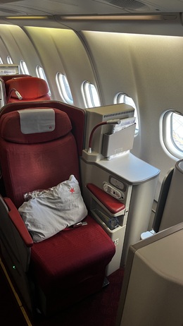 香港航空 ビジネスクラス搭乗記 HX761 香港-バンコク A330 シート・機内食デジコンシェル。