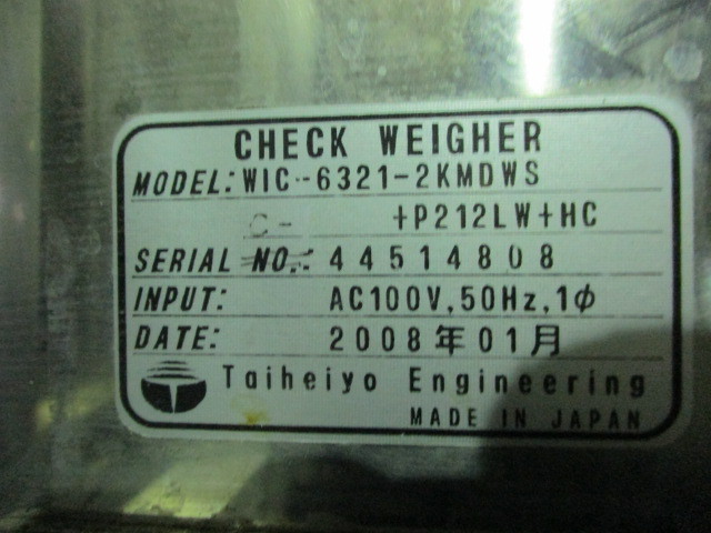 ウェイトチェッカー 品質検査向け重量チェッカーWIC-6321-500F + コンベアCD212 太平洋エンジニアリング製。