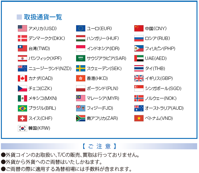 外貨宅配サービス比較。両替レート 手数料を通貨ごとに│国際キャッシュカード&海外キャッシング比較。
