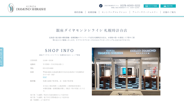 銀座ダイヤモンドシライシ 札幌時計台店の店舗情報結婚指輪・婚約指輪の専門紹介サイト ハピハピリング。
