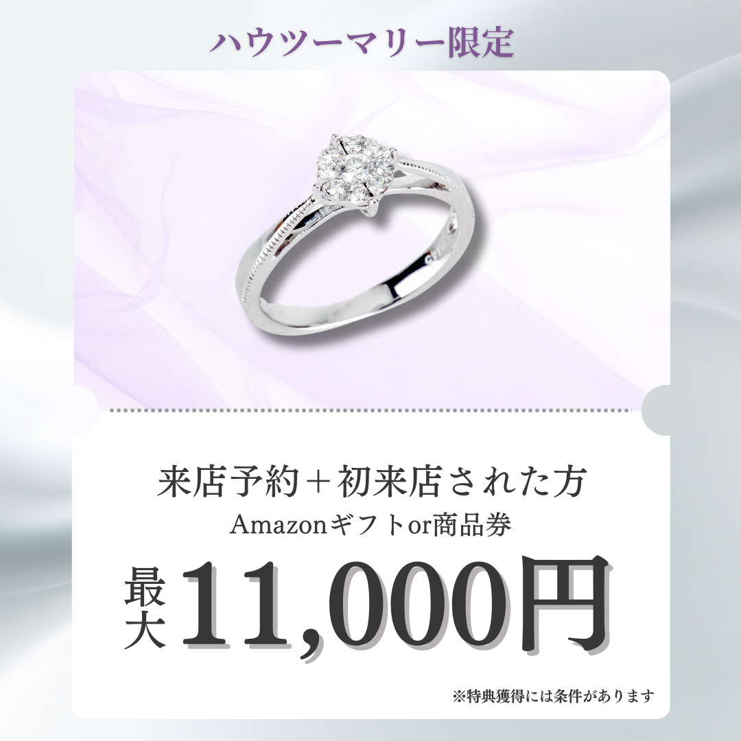 最大1.1万円プレゼント有り 銀座ダイヤモンドシライシの来店予約特典をご紹介。