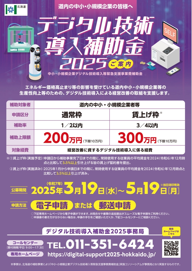 北海道>「デジタル技術導入補助金2025」のご案内エールを北のチカラに。ほっかいどう応援団会議。