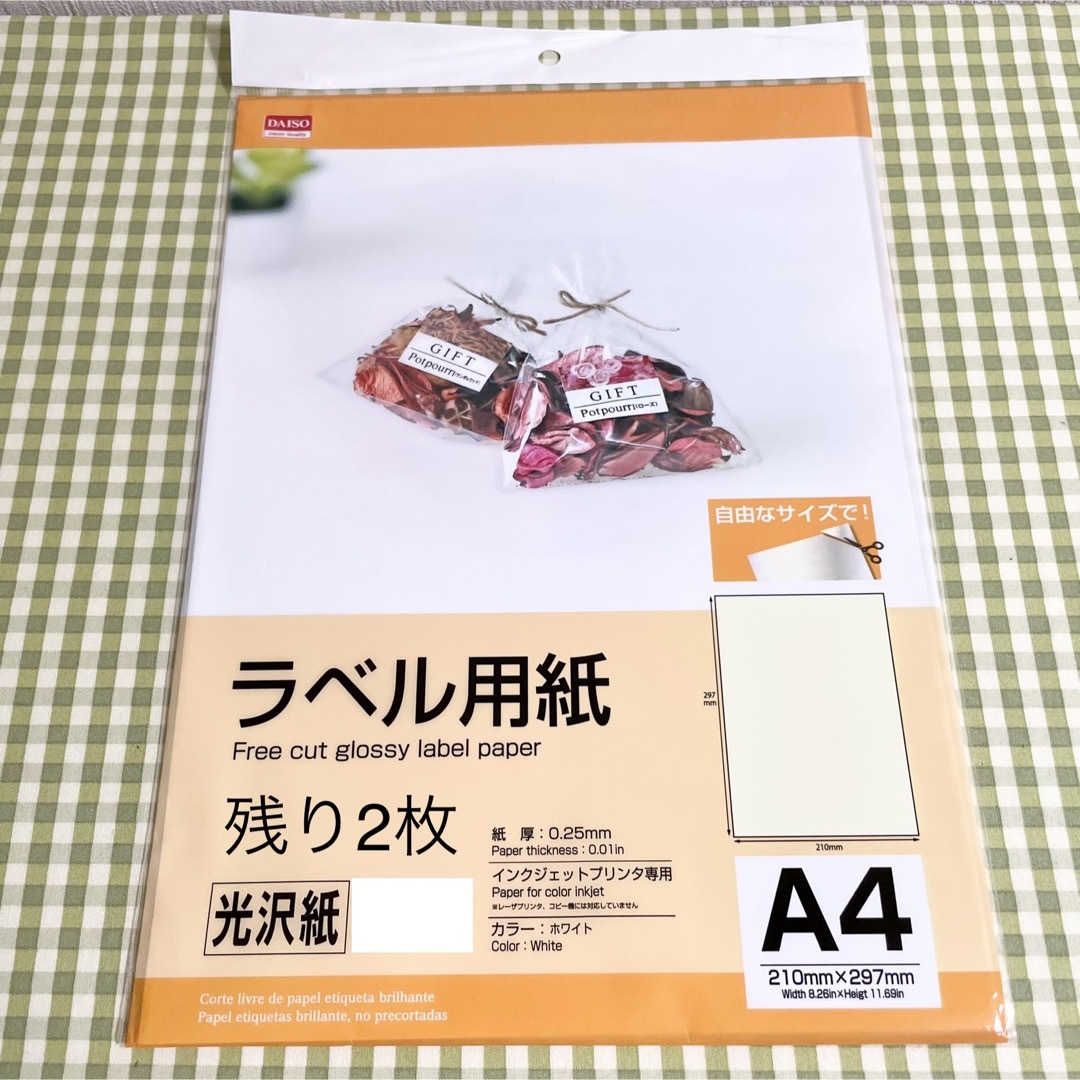 Daiso ラベルシール普通紙 A4 10枚 インクジェットプリンター対応 - メルカリ。