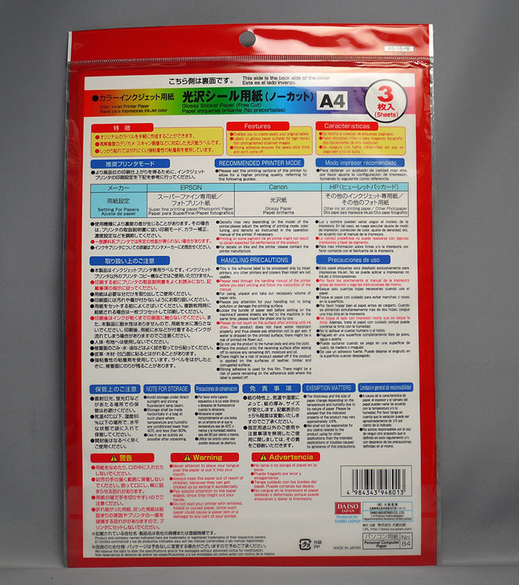 楽天市場 光沢シール用紙 グロスタイプ インクジェットプリンター専用 A4サイズ 29.7×21cm5枚入100円ショップ 100円均一100均一 100均: 100円雑貨&日用品卸-BABABA。