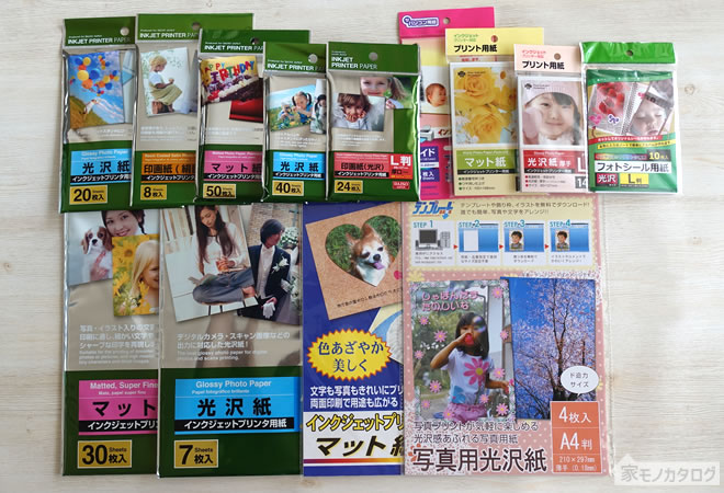 100均「シール用紙・ラベルシート」の商品一覧。ダイソー、セリアの枚数と対応プリンタ。