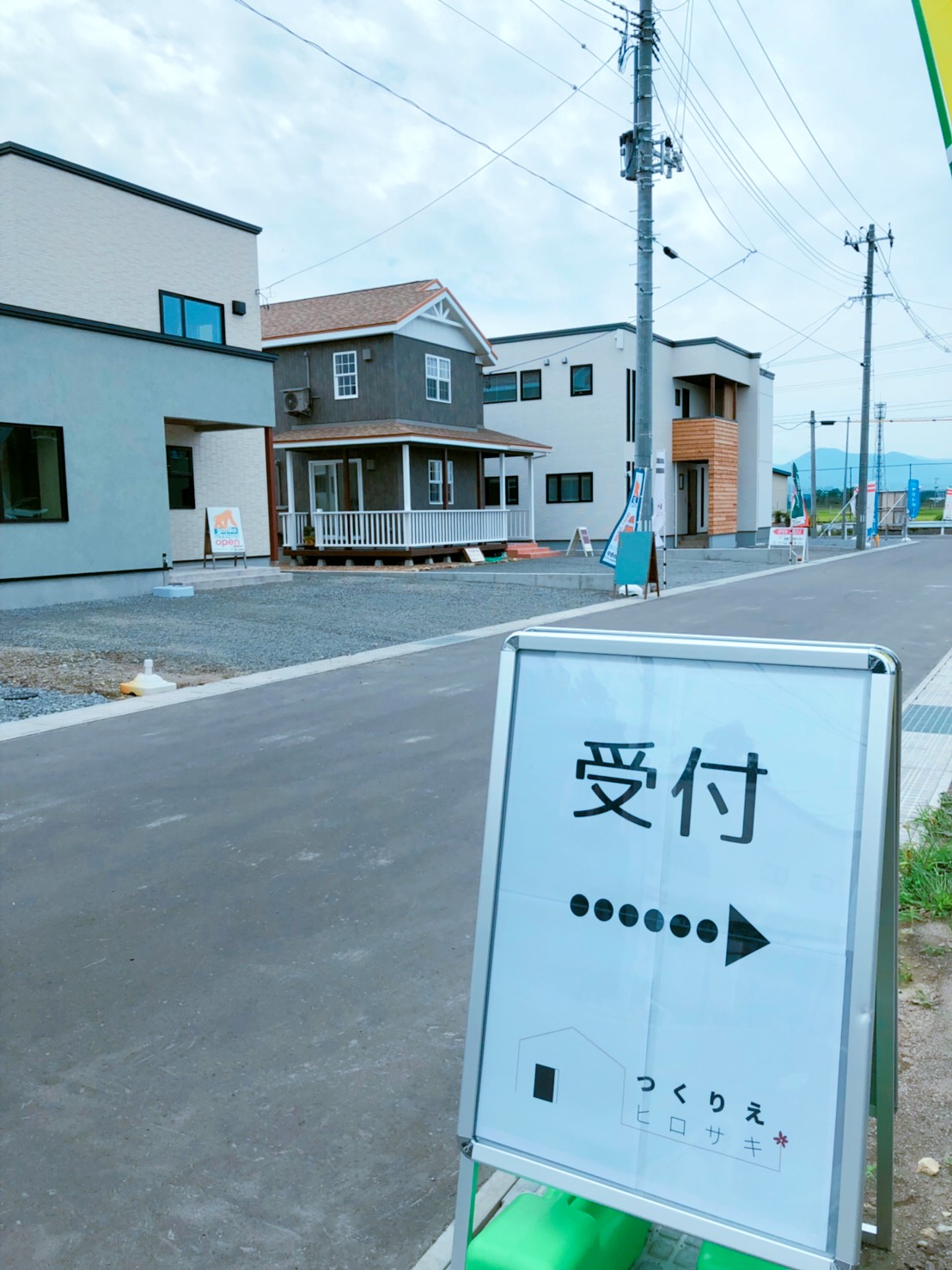 立て看板「受付はこちら」 550X1400 無反射 自立式19角枠付工事看板ドットコム。