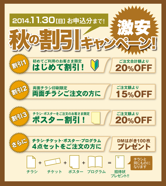 セット割引のご案内 発表会・コンサート デザイン作成と印刷 チラシ印刷劇場。
