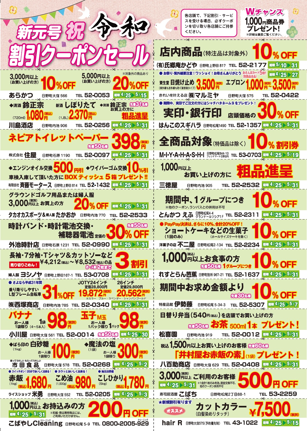 新元号 祝『令和』 割引クーポンセール日野町商工会。