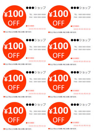 クーポン・割引券」のチラシ無料テンプレート・デザインサンプル - ネット印刷グラフィック。