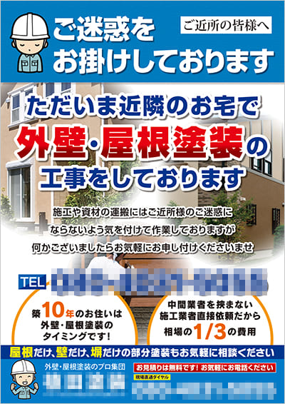 外壁・屋根塗装工事の際に撒くご近所へのごあいさつチラシアリキヌ:チラシ制作部。